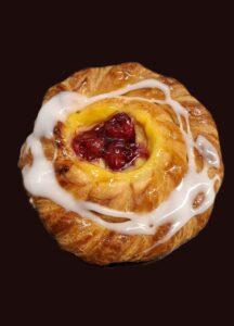 koffiekoek met gele room en kersen.